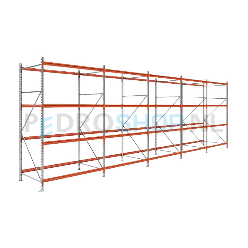 Grootvakstelling: 250cm (h) x 100cm (d) x 781.2cm (l) x 4 niveaus