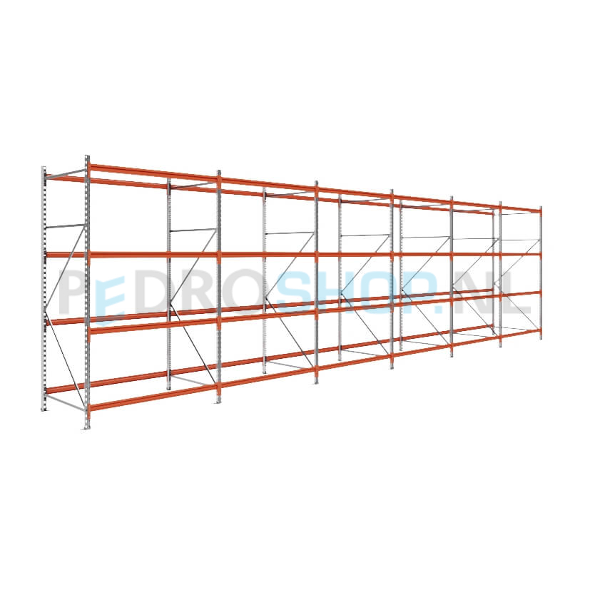 Grootvakstelling: 250cm (h) x 100cm (d) x 936.4cm (l) x 4 niveaus