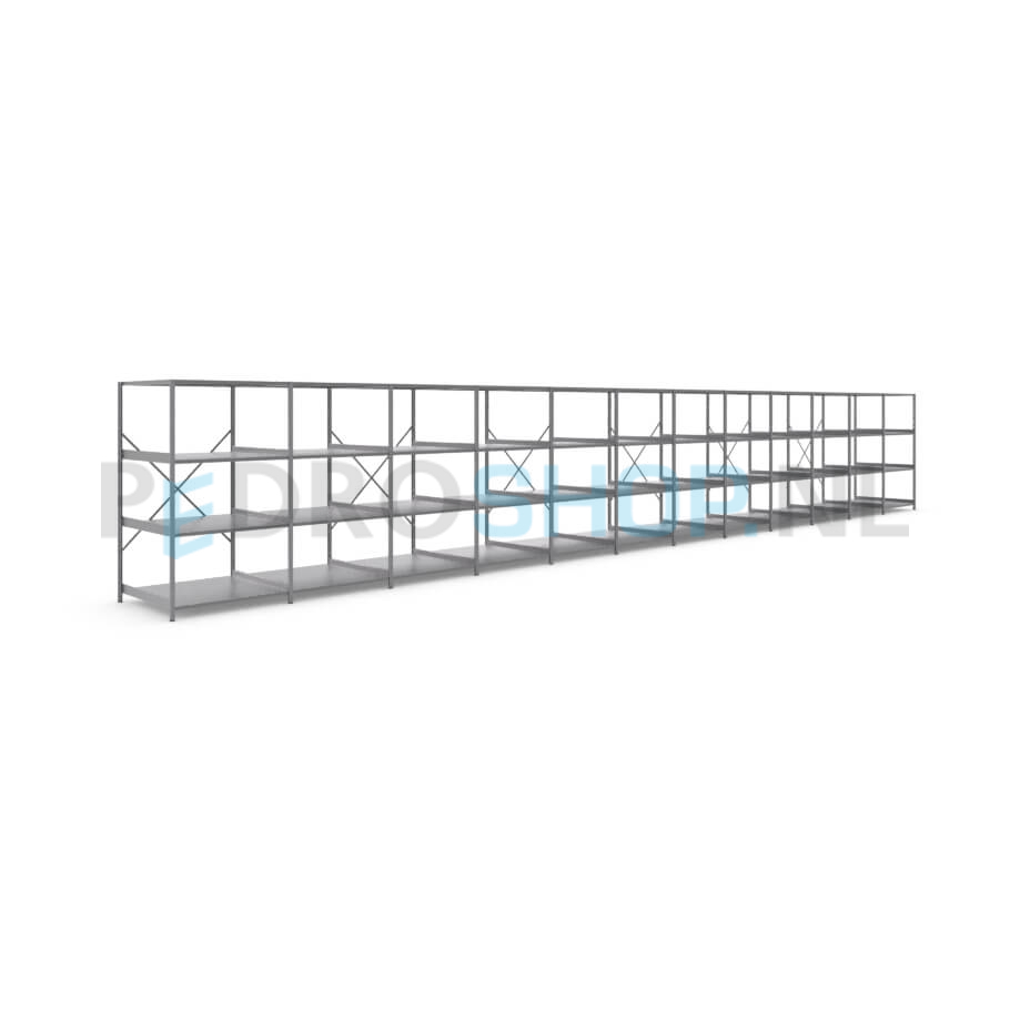 Metalen stellingkast: 180cm (h) x 100cm (d) x 1210.8cm (l)