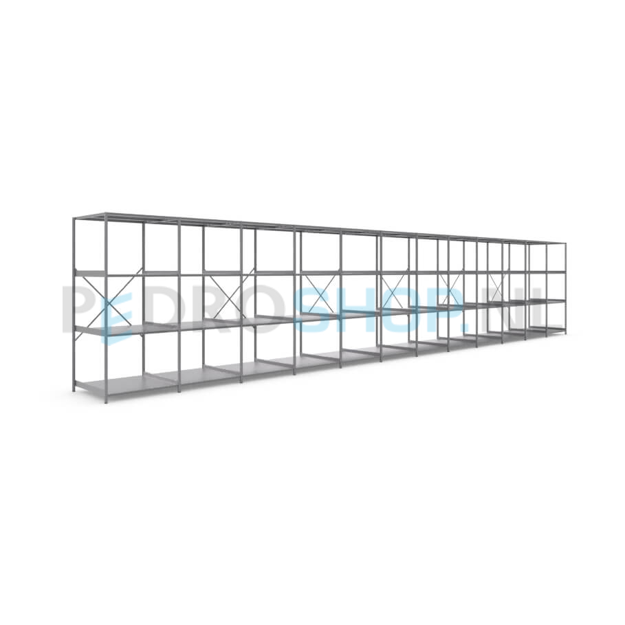 Metalen stellingkast: 230cm (h) x 100cm (d) x 1210.8cm (l)