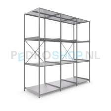 Metalen stellingkast: 300cm (h) x 100cm (d) x 305.4cm (l)