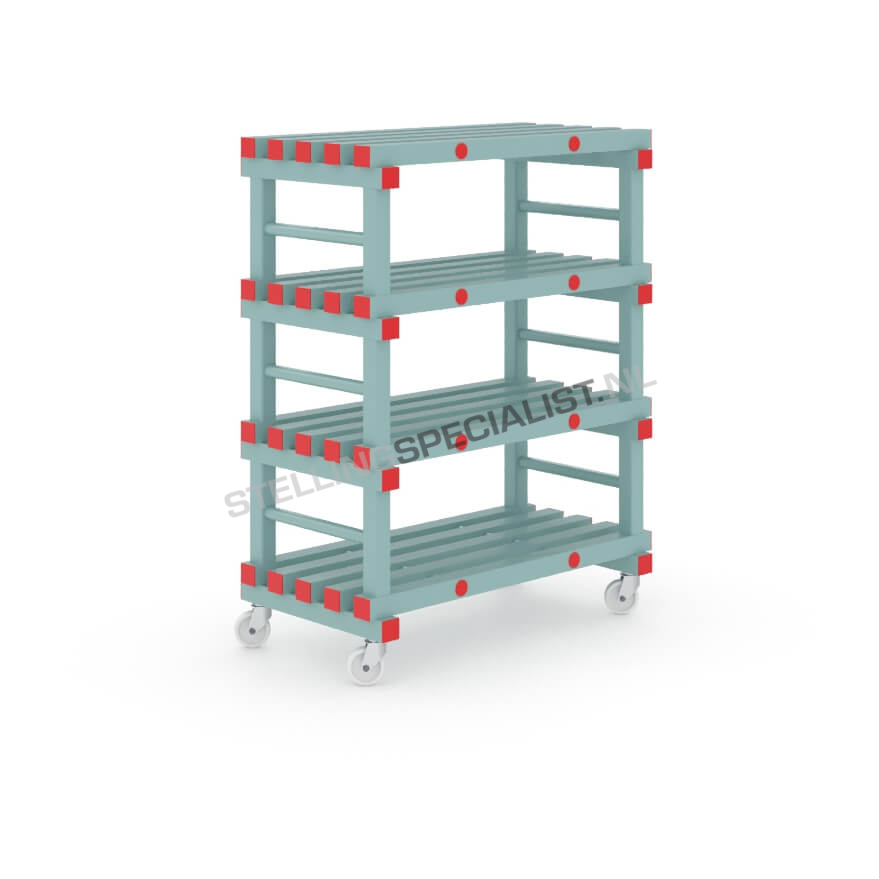 Kunststof stelling: 128cm (h) x 50cm (d) x 100cm (l)