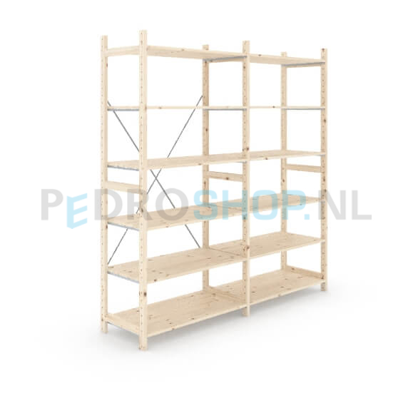 Houten stellingkast Easyrack: 210cm (h) x 50cm (d) x 203cm (l)